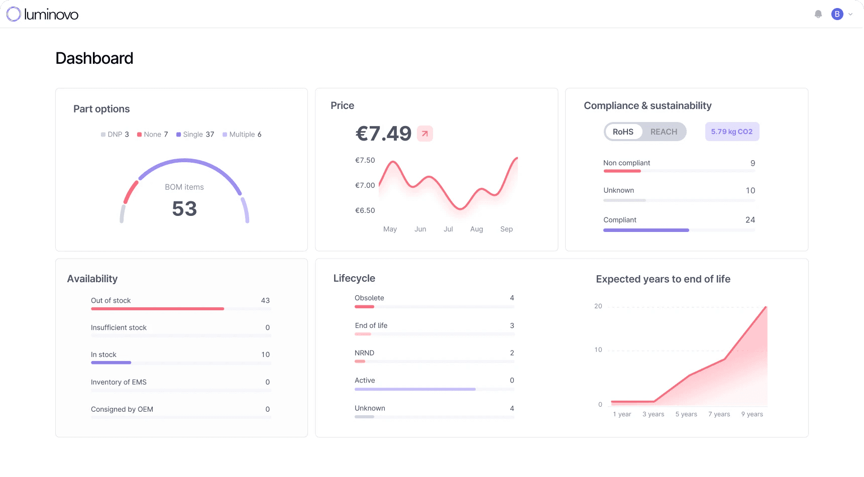 Luminovo's software platform brings all your electronics data, processes, and players together in one place.