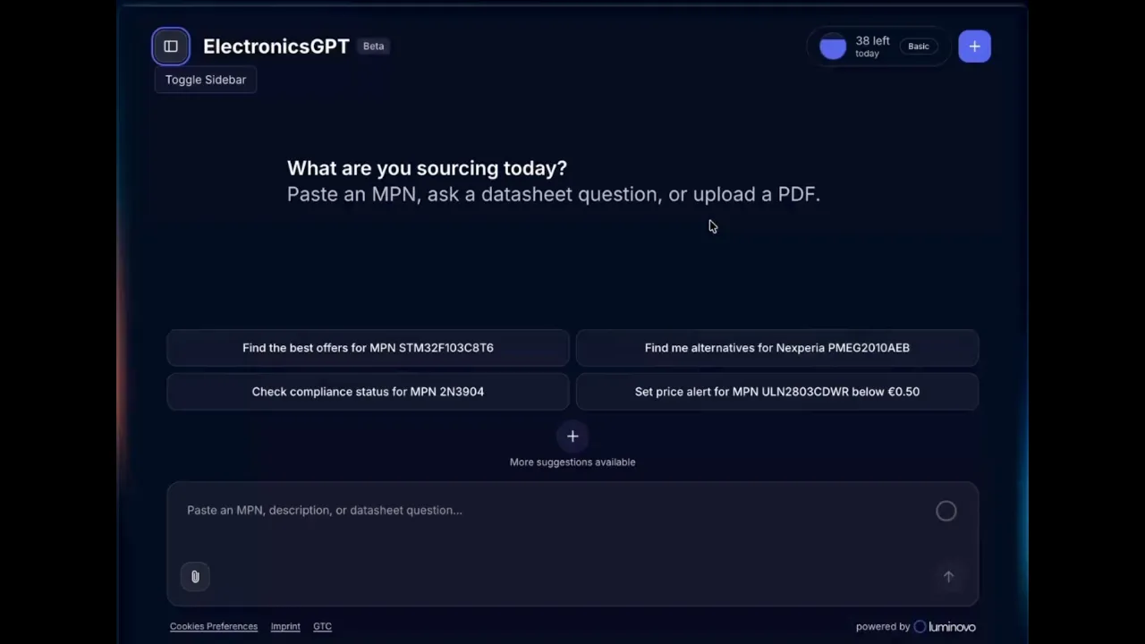 At Luminovo, we’re really excited to introduce ElectronicsGPT to the world, the first AI agent purpose-built specifically for electronics procurement professionals. Grounded in real-time supply chain data and designed for the unique workflows of sourcing managers, ElectronicsGPT combines the brain of an industry expert with the interface of a modern digital assistant.