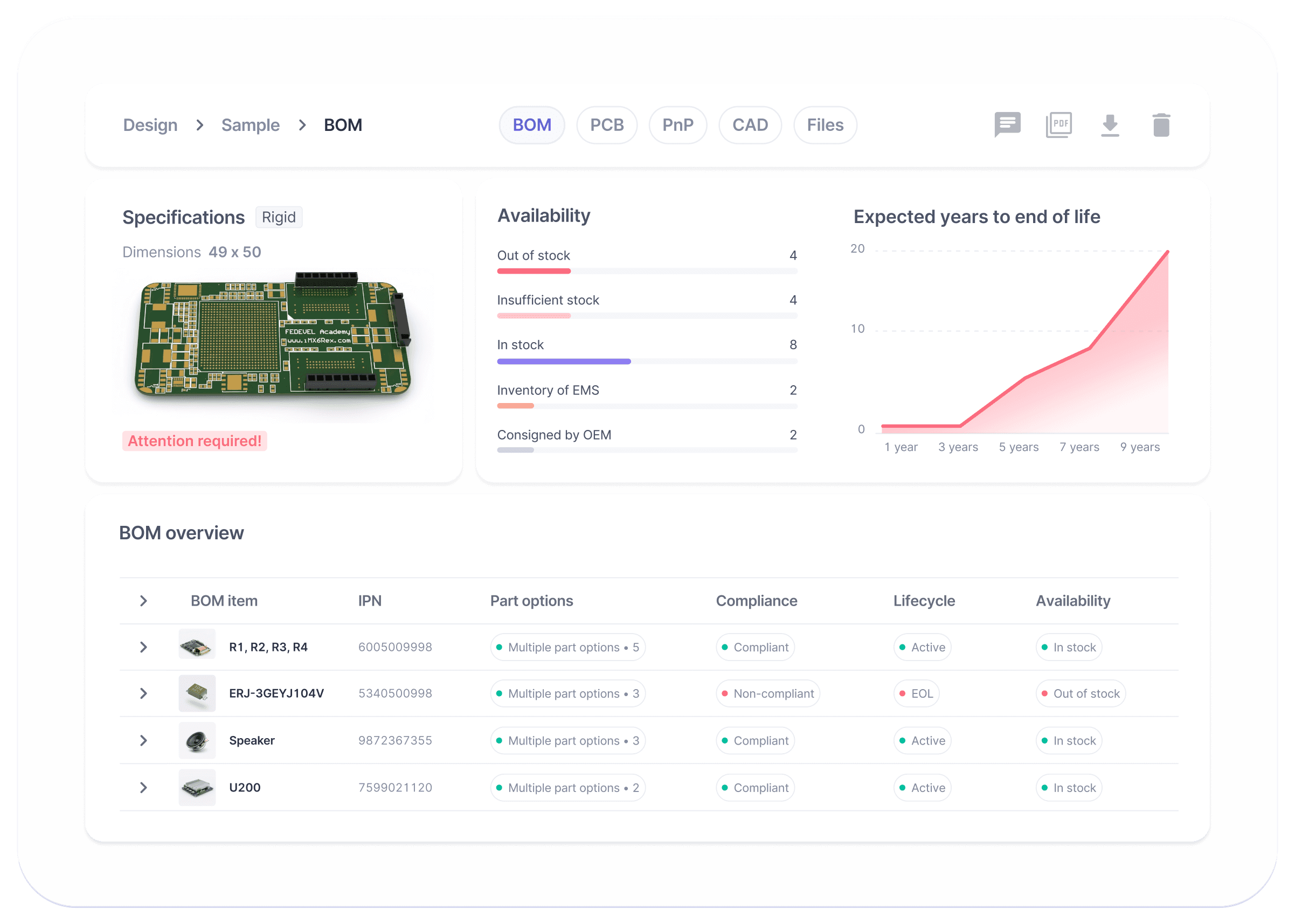 Let our AI manage your messy BOM, PCB files, sourcing, demand, inventory, and calculation.